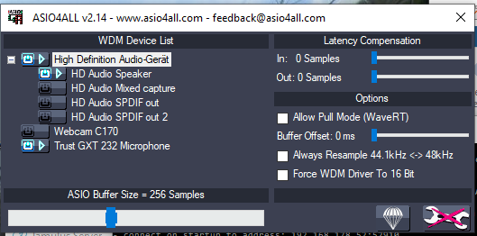 Geräte, die direkt an das System angeschlossen werden, benötigen ebenfalls einen ASIO-Treiber, und dazu wird in den meisten Fällen der Treiber ASIO4ALL genutzt.